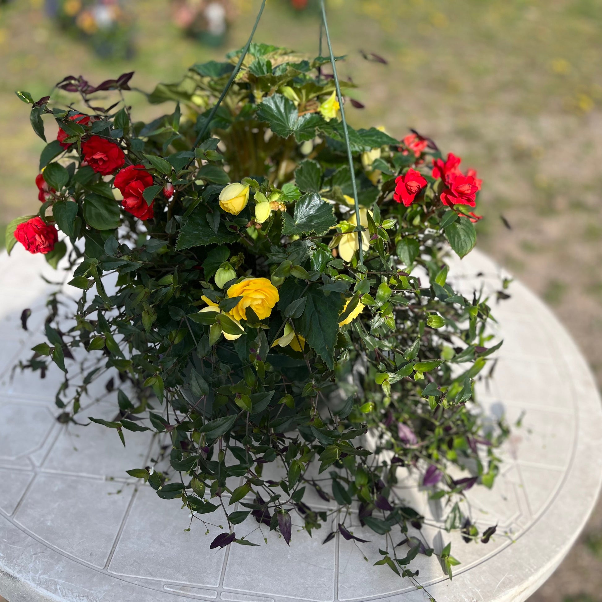 Premium Combo Tuberous Begonia Yellow, double impatiens red, bridal veil, Sun Preference: Partial Shade